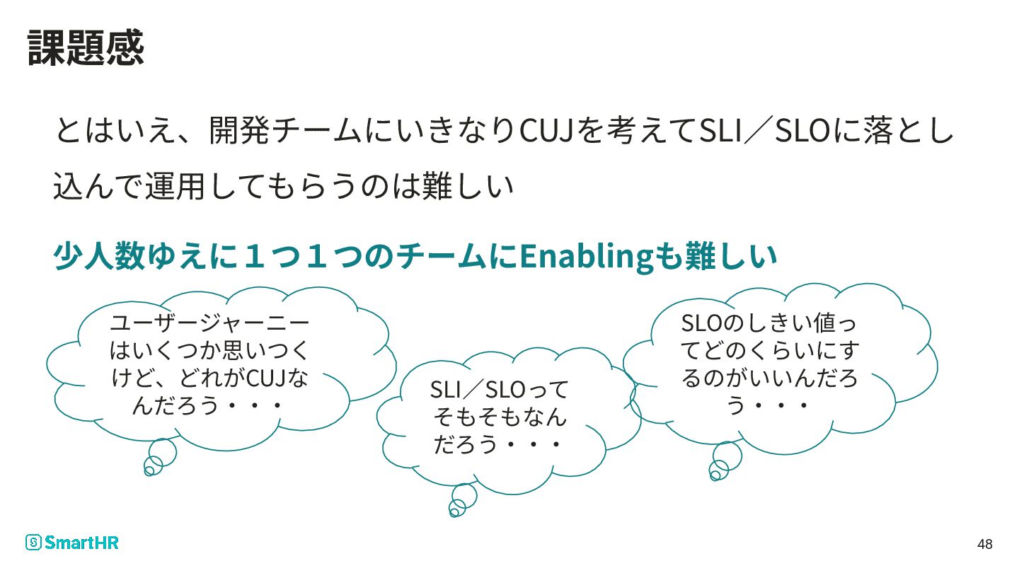 う‧‧‧ SLI∕SLOって そもそもなん だろう‧‧‧ 48 課題感