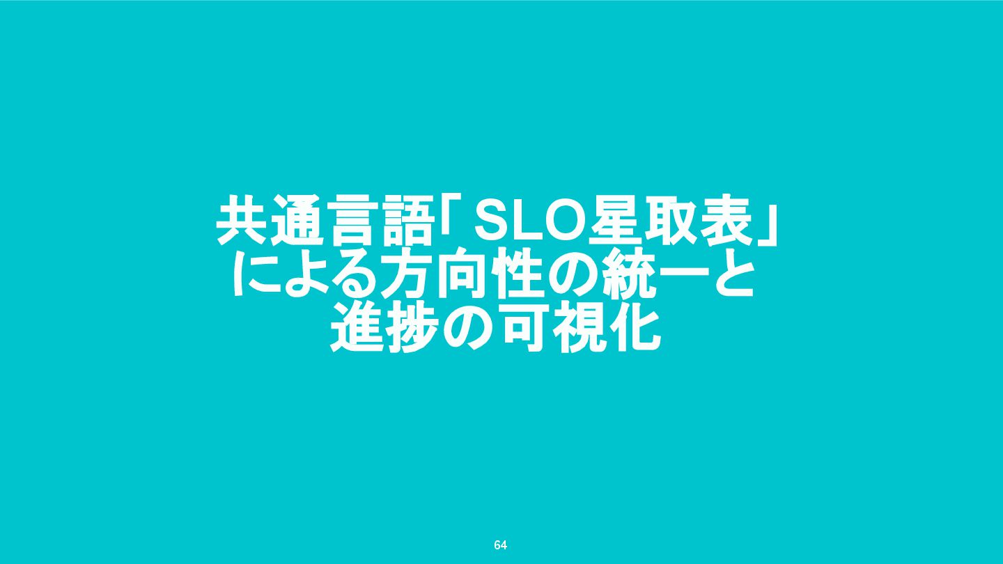 共通言語「 SLO星取表」 による方向性の統一と 進捗の可視化 64