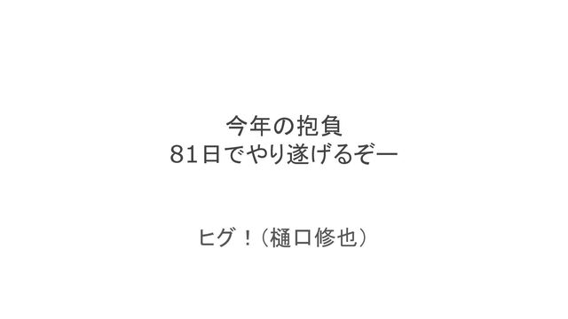今年の抱負 81日でやり遂げるぞー ヒグ!(樋口修也)