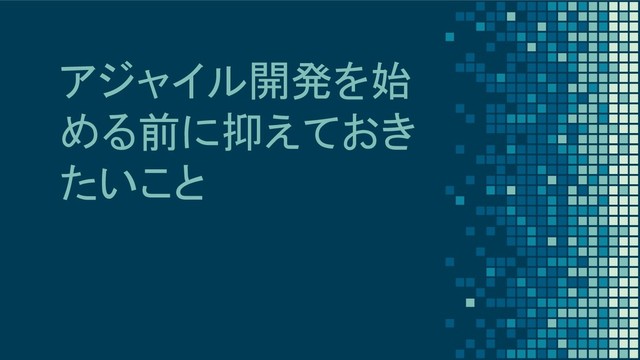 アジャイルほぼ未経験のチームに導入する前に知っておいてもらいたいことを簡単に説明するための資料です。 最低限の原則と、自分が手探りで進めてきた中で「これ最初から身につけておければよかったなぁ」と痛感したものを特に重点的に。