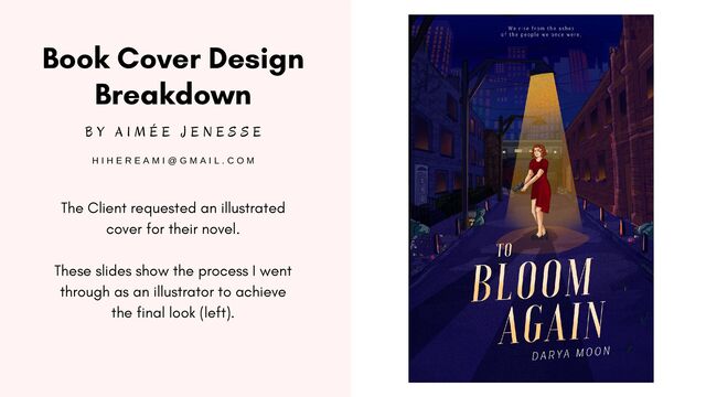 all around her. The very little light there is shines on her like a spotlight. She's holding a gun and she's either facing front or giving her back to the viewer (to display her scar). She's standing upright, although maybe holds her arm. She's half wounded but ready to fight what's coming. Semi-painterly style.'' ''Against a pristine white background, Meghan stands alone. She's laying on the ground on a fetal position, her hands around her legs, hee back to the viewer. From the bleeding wound on her shoulder, the pristine white is tainted by spots of red. They look like blood splotches on the ground but they are roses. This piece would have a very limited palette: Black, white and red. The lineart would be intricate and ink-like.'' Thumbnail #2 Thumbnail #3 This design was selected by the client