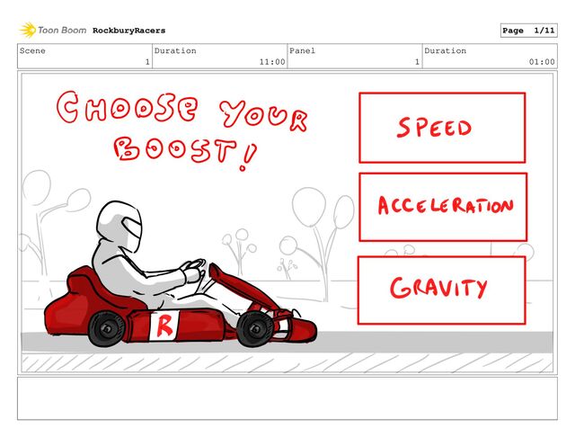 Scene 1 Duration 11:00 Panel 1 Duration 01:00 RockburyRacers Page