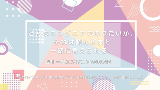 世界一流エンジニアの思考法 世界一流エンジニアの思考法 私のバイブル!ガチ推し本ロワイヤル 大AI時代だからこそ 「人間が選ぶこの一冊」 私のバイブル!ガチ推し本ロワイヤル 大AI時代だからこそ 「人間が選ぶこの一冊」