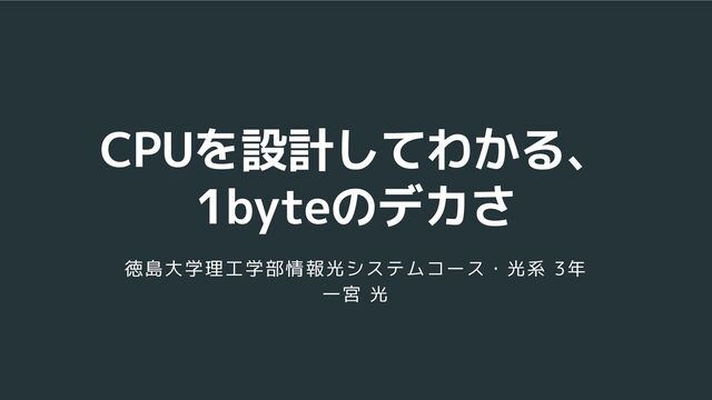 徳島大学理工学部情報光システムコース・光系 3年 一宮 光 CPUを設計してわかる、 1byteのデカさ
