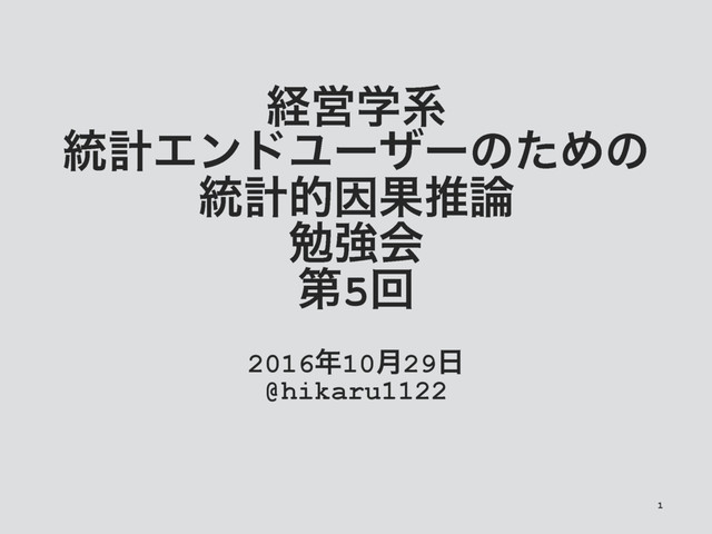 ܦӦֶܥ ౷ܭΤϯυϢʔβʔͷͨΊͷ ౷ܭతҼՌਪ ษڧձ ୈ5ճ 201610݄29 @hikaru1122 1