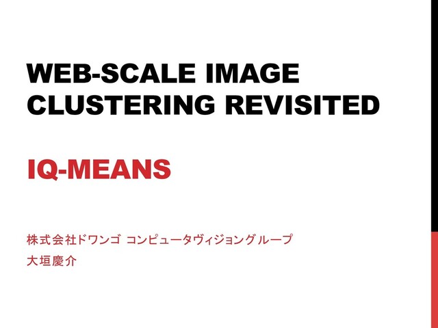 WEB-SCALE IMAGE CLUSTERING REVISITED IQ-MEANS 株式会社ドワンゴ コンピュータヴィジョングループ 大垣慶介