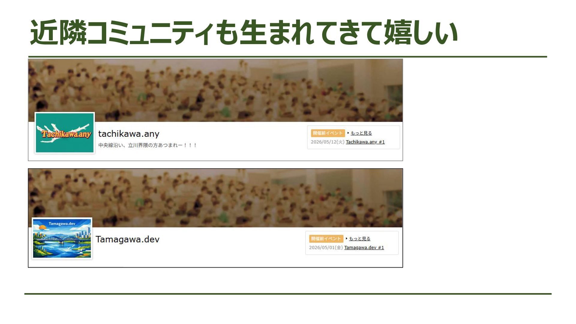 都心の代替ではない 無理なく続くエンジニアコミュニティを
