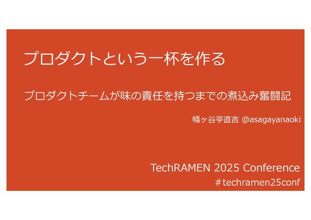 プロダクトという一杯を作る - プロダクトチームが味の責任を持つまでの煮込み奮闘記 TechRAMEN 2025 Conference 2025年7月26日(土) https://fortee.jp/techramen-25-conf/proposal/ebf946a2-f90a-4e88-be93-a0d4c1cd9386