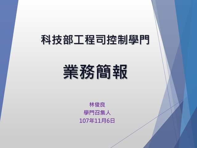 科技部工程司控制學門 業務簡報 林俊良 學門召集人 107年11月6日