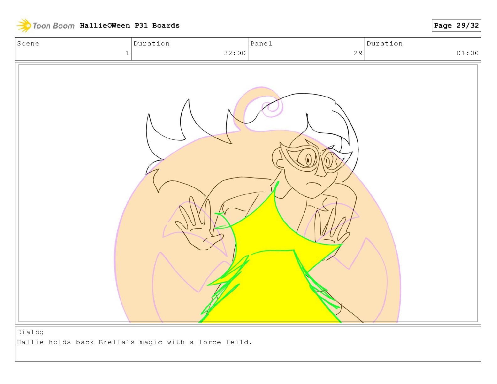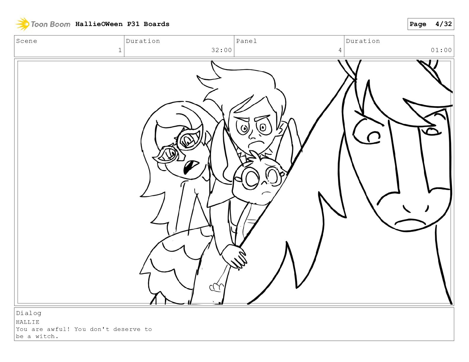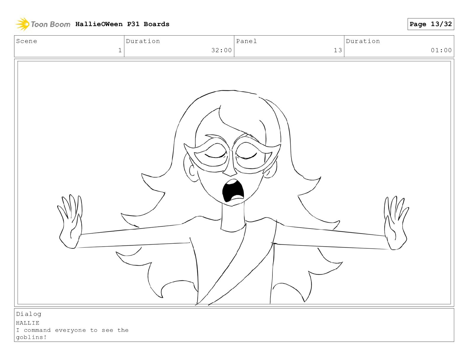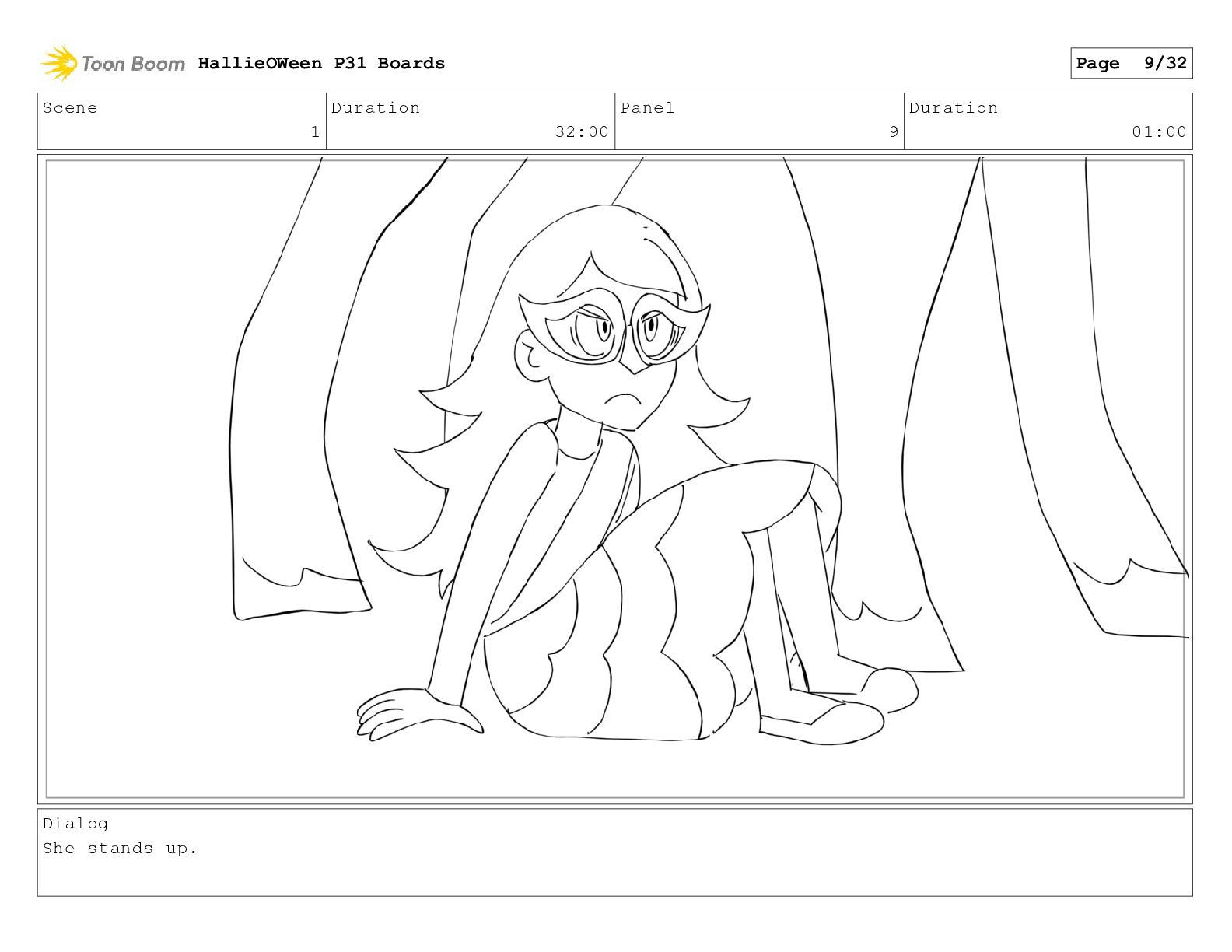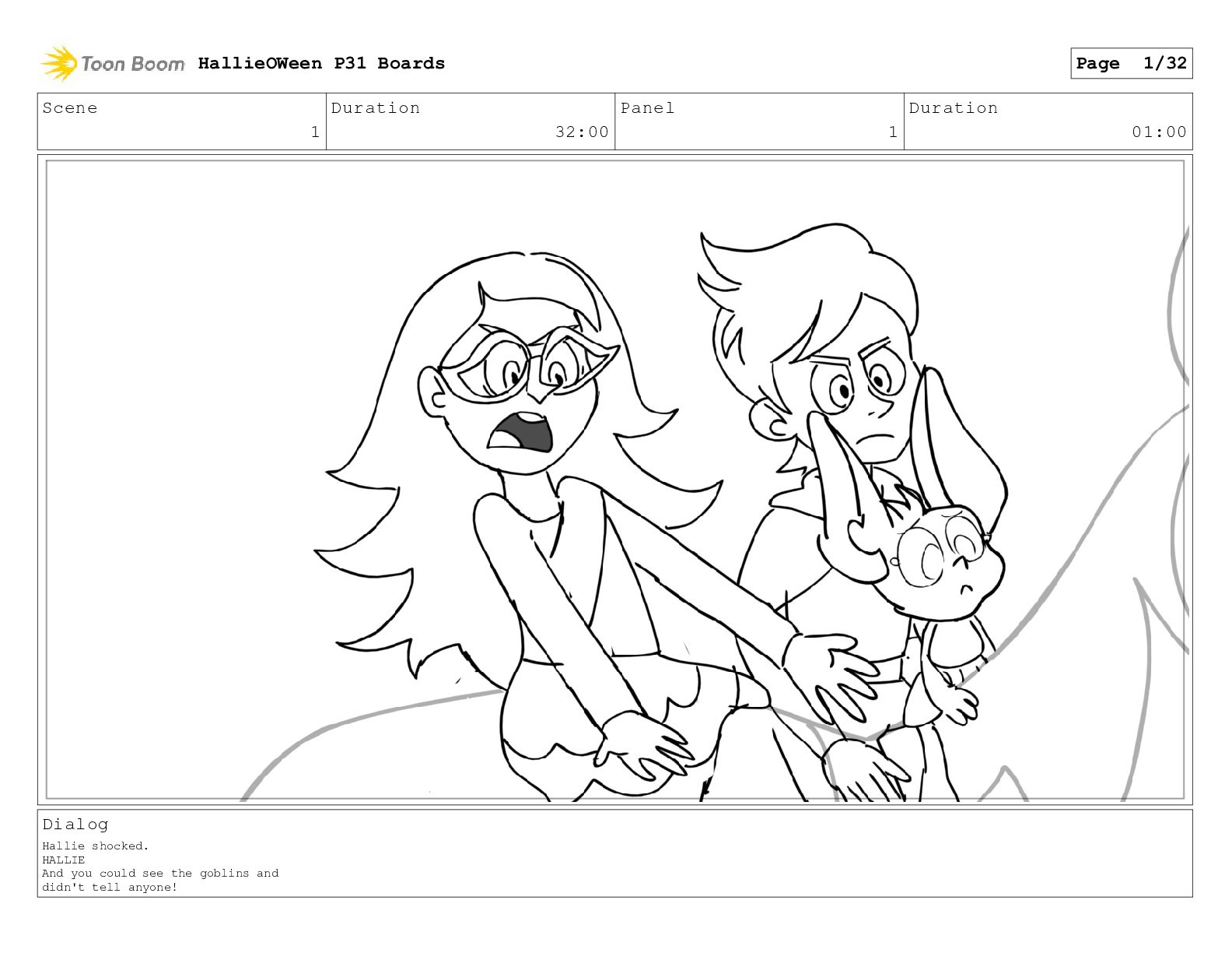Scene 1 Duration 32:00 Panel 29 Duration 01:00 Dialog Hallie