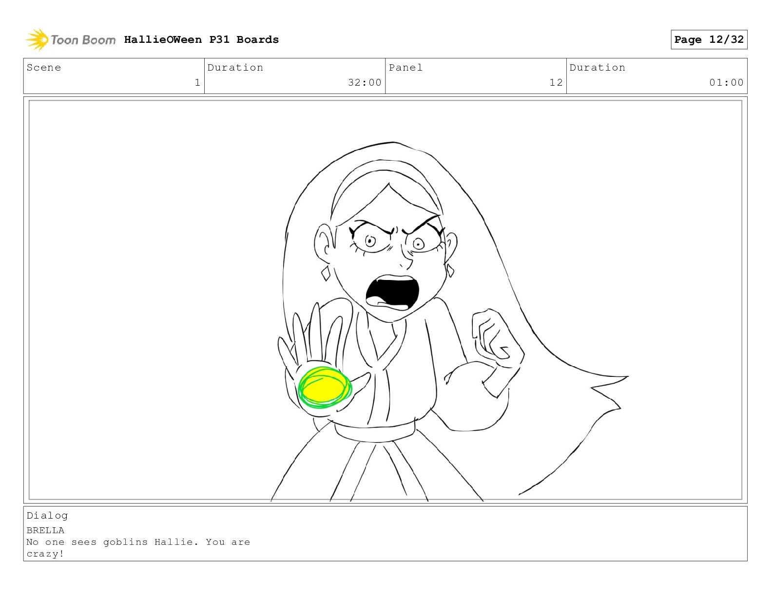 Scene 1 Duration 32:00 Panel 12 Duration 01:00 Dialog BRELLA