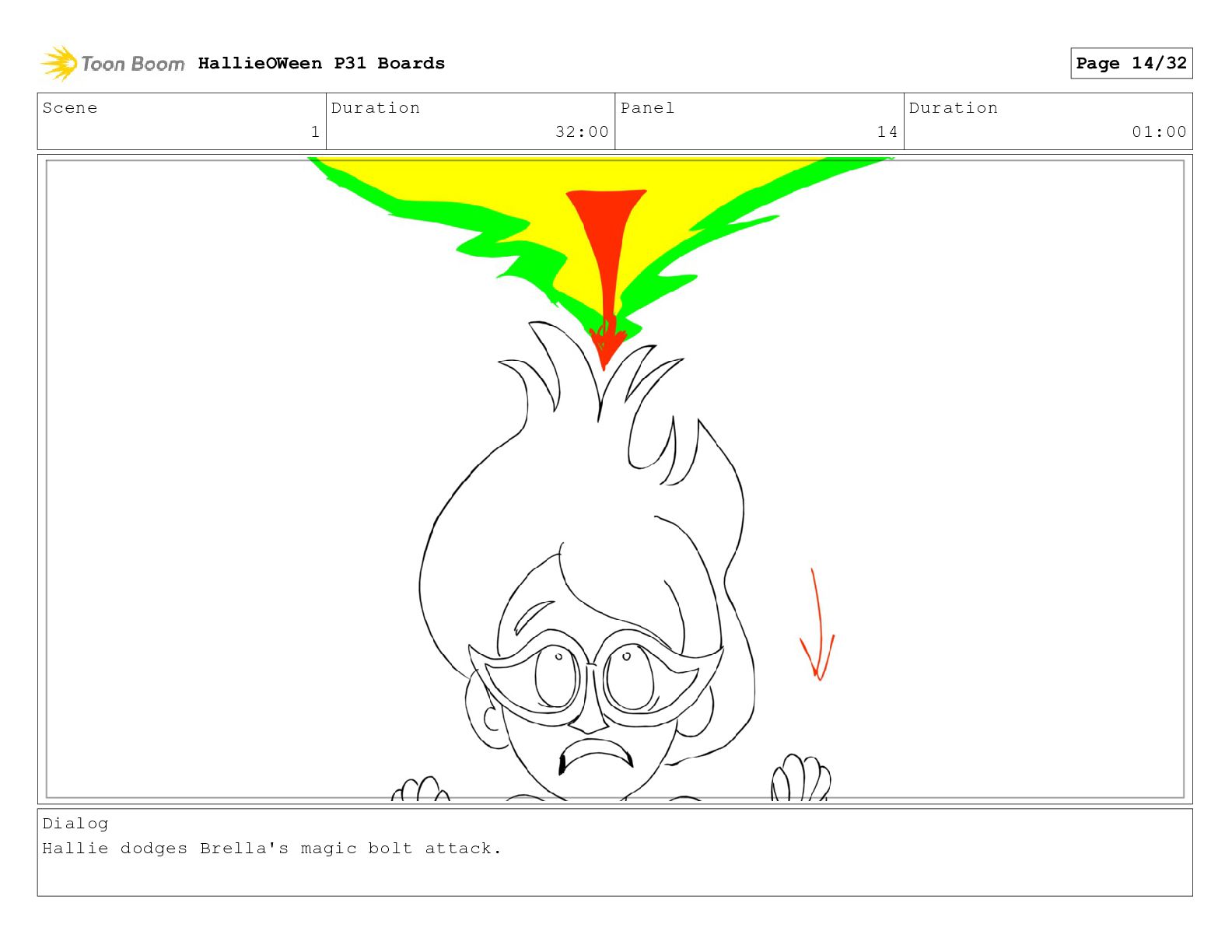 Scene 1 Duration 32:00 Panel 14 Duration 01:00 Dialog Hallie