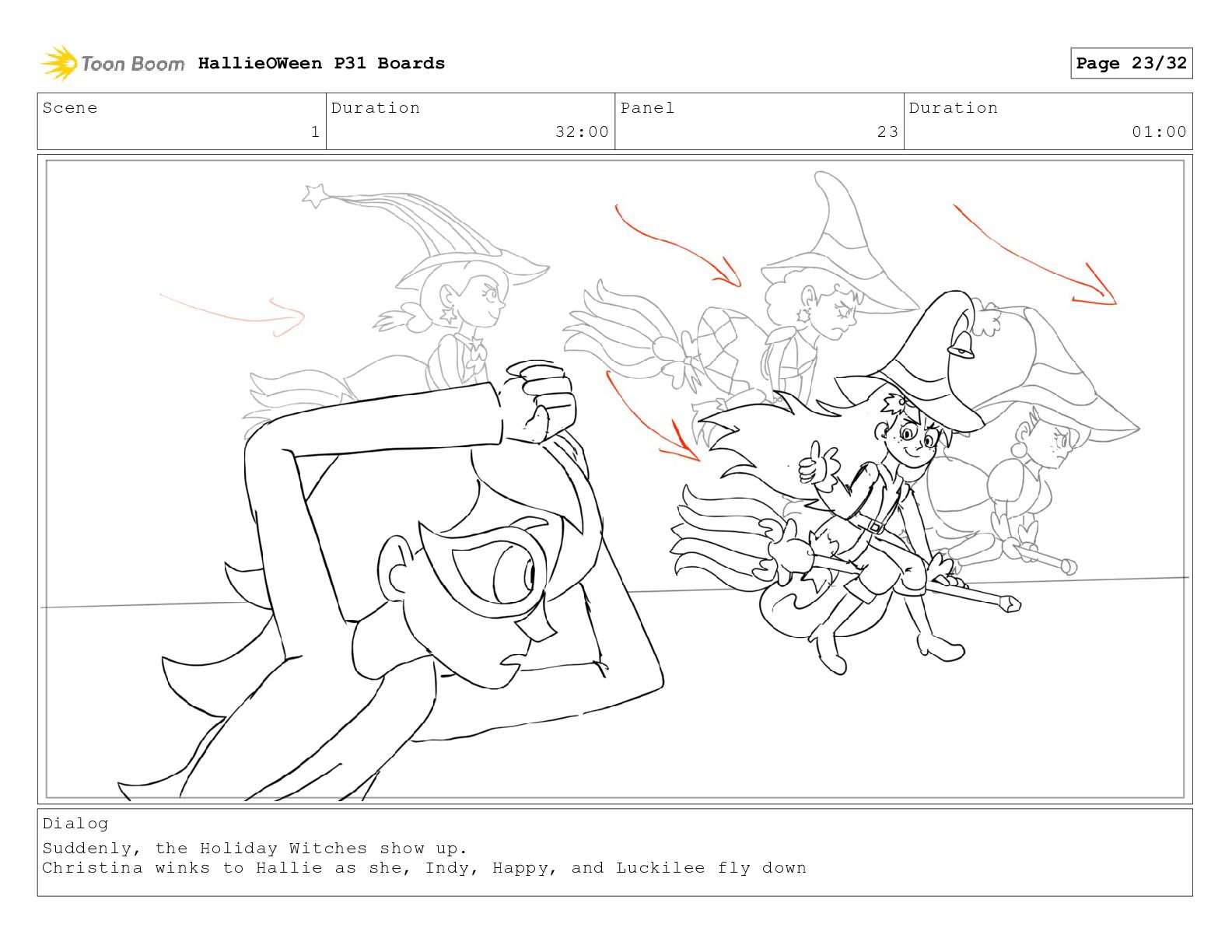 the Holiday Witches show up. Christina winks to Hallie as she, Indy, Happy, and Luckilee fly down HallieOWeen P31 Boards Page 23/32