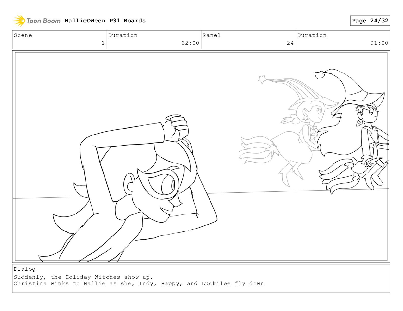 Scene 1 Duration 32:00 Panel 24 Duration 01:00 Dialog Suddenly,