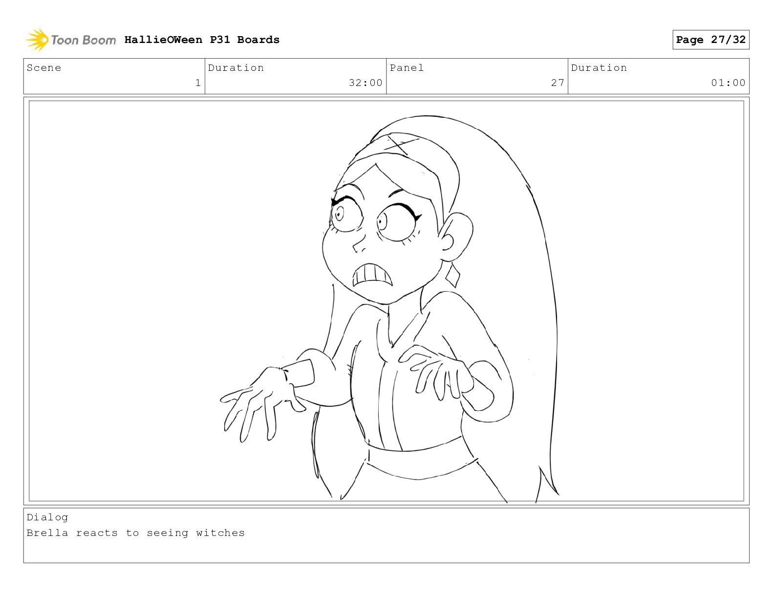 Scene 1 Duration 32:00 Panel 27 Duration 01:00 Dialog Brella