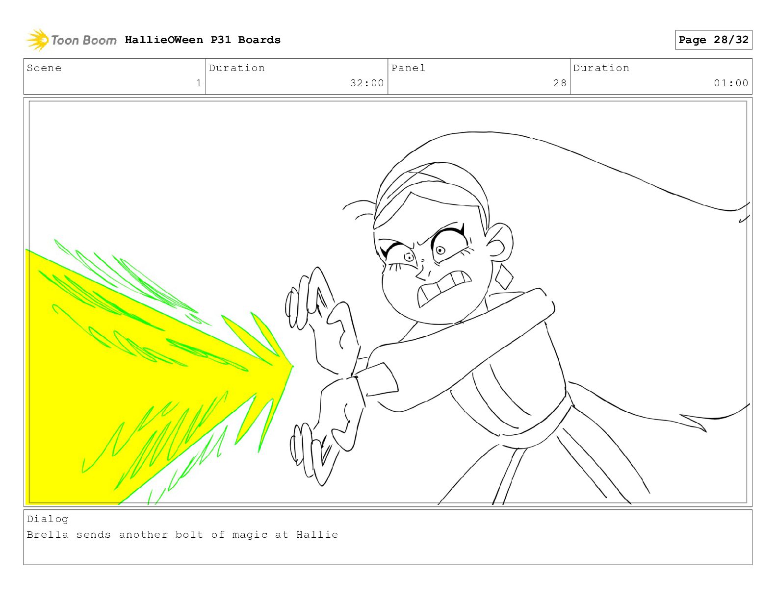 Scene 1 Duration 32:00 Panel 28 Duration 01:00 Dialog Brella