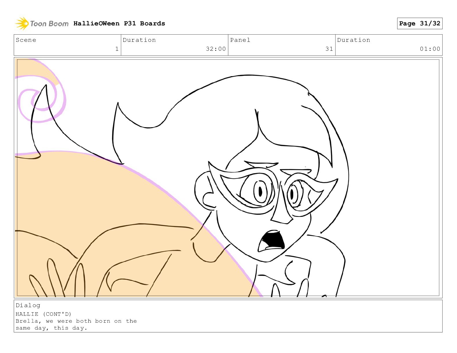(CONT'D) Brella, we were both born on the same day, this day. HallieOWeen P31 Boards Page 31/32