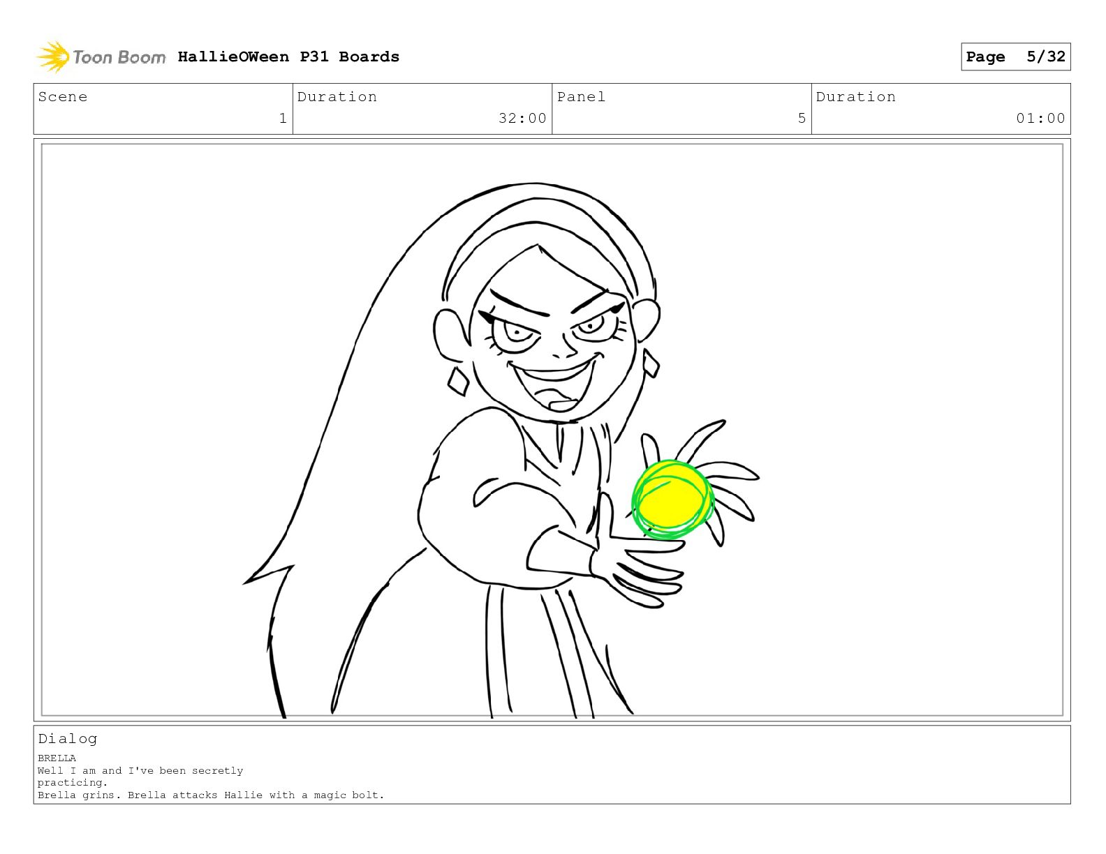 Scene 1 Duration 32:00 Panel 5 Duration 01:00 Dialog BRELLA