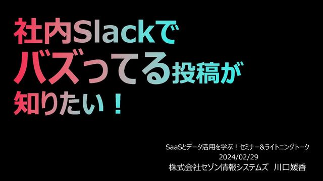 社内Slackで バズってる投稿が 知りたい! SaaSとデータ活用を学ぶ!セミナー&ライトニングトーク 2024/02/29 株式会社セゾン情報システムズ 川口媛香