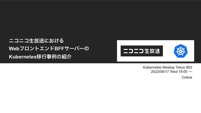 2022/06/13に「ニコニコ生放送 WebフロントエンドのKubernetes移行ハンドブック 2022」を公開しました。本発表ではハンドブックの内容とともに、WebフロントエンドにおけるKubernetesへの移行と運用がどのようなものか紹介します。