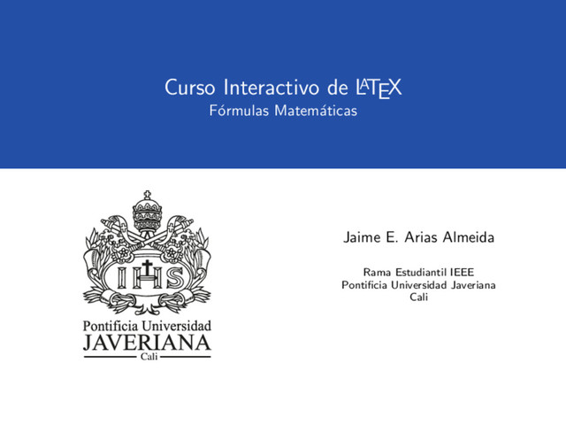 Textos Cient´ ıficos con LATEX: Composici´ on, Gr´ aficos y Presentaciones Beamer. Revista digital, Matem´ atica, Educacion e Internet, 2009, 180 Kopka, H. & Daly, P. W. Guide to LATEX. Pearson Education, 2004, 597 Lamport, L. LATEX: a Document Preparation System. Addison-Wesley, 1994, 282 Oetiker, T.; Partl, H.; Hyna, I. & Schlegl, E. The Not So Short A Introduction to LATEX 2 , 2009 14 / 14
