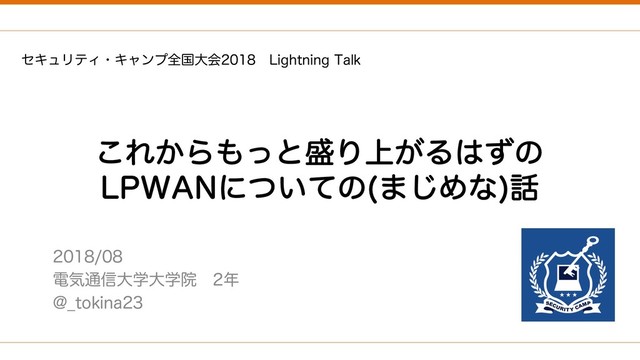 ͜Ε͔ΒͬͱΓ্͕Δͣͷ -18"/ʹ͍ͭͯͷ ·͡Ίͳ ిؾ௨৴େֶେֶӃ !@UPLJOB ηΩϡϦςΟɾΩϟϯϓશࠃେձ -JHIUOJOH5BML