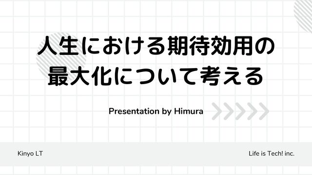 人生における期待効用の 最大化について考える Presentation by Himura Kinyo LT Life is Tech!