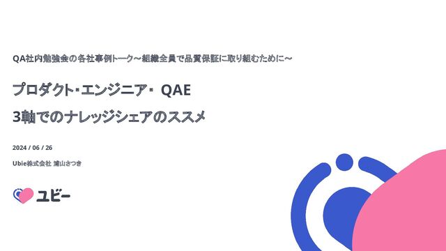 2024/06/26 【ログラス×MIXI×Ubie】QA社内勉強会の各社事例トーク〜組織全員で品質保証に取り組むために〜 https://loglass-tech.connpass.com/event/320737/
