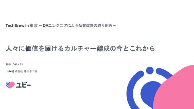 人々に価値を届けるカルチャー醸成の今とこれから 2024 / 01 / 31 Ubie株 式会社 浦山さつき TechBrew