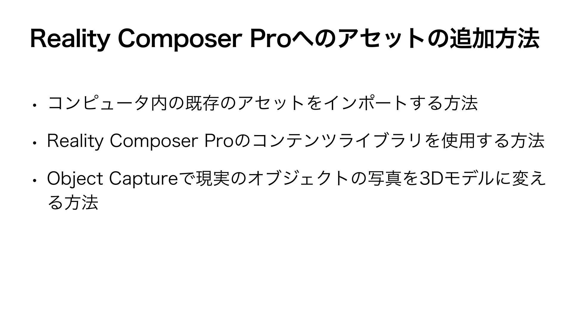 3FBMJUZ$PNQPTFS1SPͷΞηοτͷՃํ๏ w ίϯϐϡʔλͷطଘͷΞηοτΛΠϯϙʔτ͢Δํ๏ w 3FBMJUZ$PNQPTFS1SPͷίϯςϯπϥΠϒϥϦΛ༻͢Δํ๏ w 0CKFDU$BQUVSFͰݱ࣮ͷΦϒδΣΫτͷࣸਅΛ%Ϟσϧʹม͑ Δํ๏