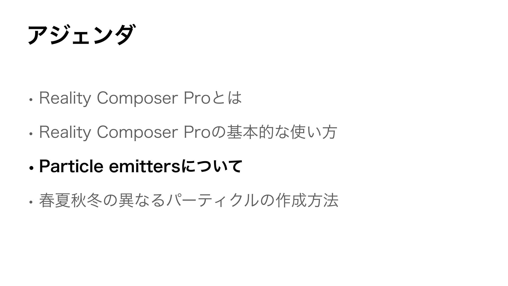 ΞδΣϯμ w 3FBMJUZ$PNQPTFS1SPͱ w 3FBMJUZ$PNQPTFS1SPͷجຊతͳ͍ํ w1BSUJDMFFNJUUFSTʹ͍ͭͯ w य़ՆळౙͷҟͳΔύʔςΟΫϧͷ࡞ํ๏