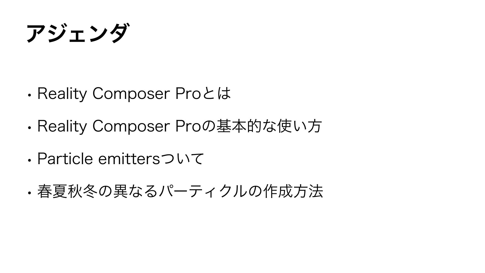 ΞδΣϯμ w 3FBMJUZ$PNQPTFS1SPͱ w3FBMJUZ$PNQPTFS1SPͷجຊతͳ͍ํ w 1BSUJDMFFNJUUFSTʹ͍ͭͯ w य़ՆळౙͷҟͳΔύʔςΟΫϧͷ࡞ํ๏