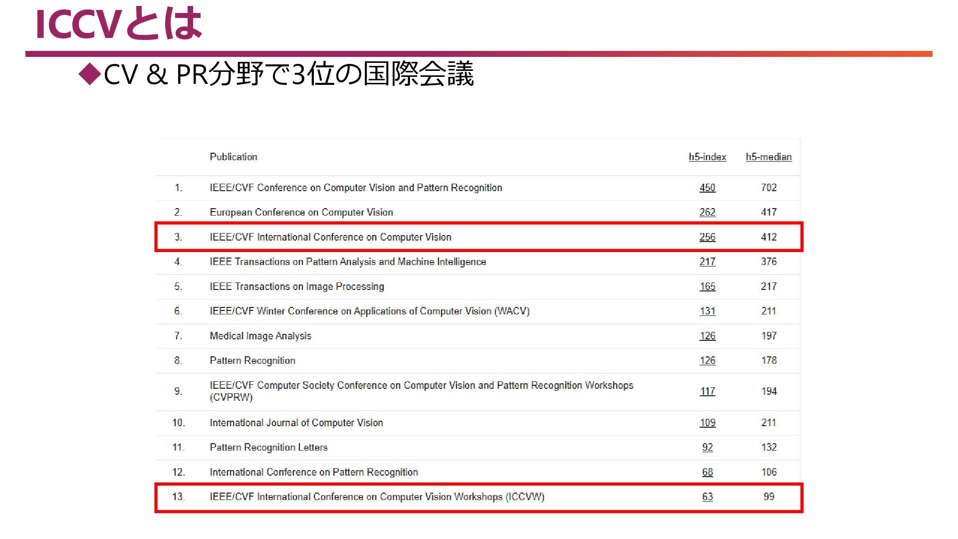 ICCVとは ◆CV & PR分野で3位の国際会議