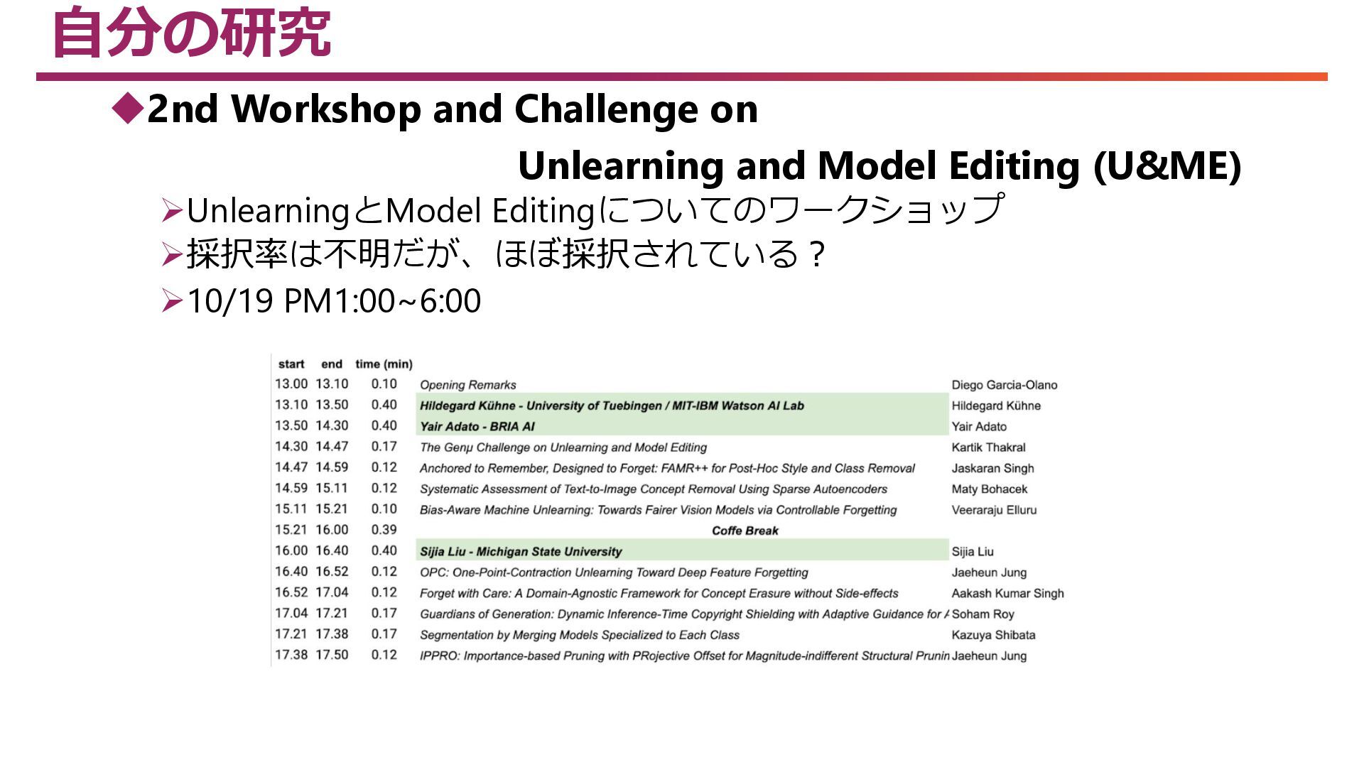 自分の研究 ◆2nd Workshop and Challenge on Unlearning and Model Editing