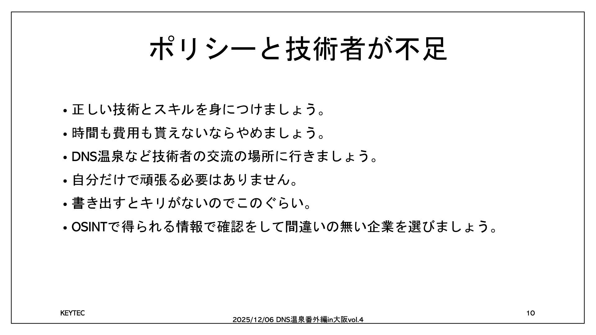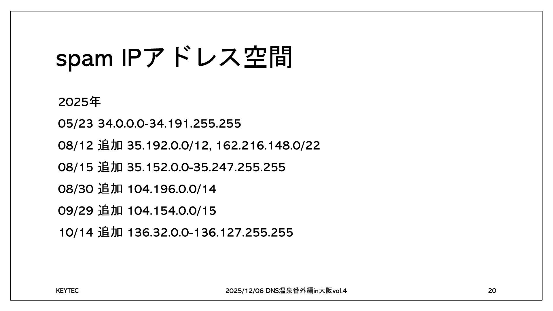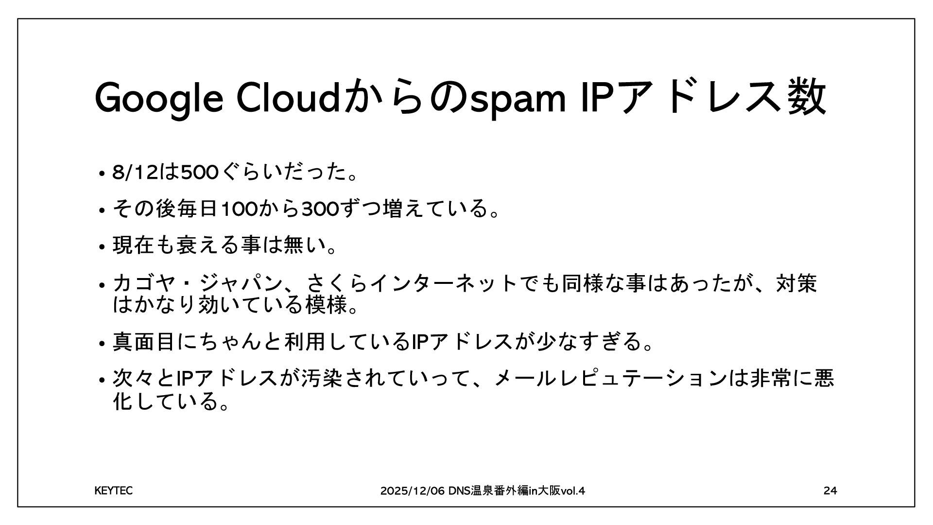 に携わって 年 2020冬DNS温泉番外編in大阪 RFC 5322 に浸かろう 2023冬DNS温泉番外編in大阪 総務担当者のOSINT 2024冬DNS温泉番外編in大阪 RFC 5322 に浸かろう 続編 温泉番外編 大阪