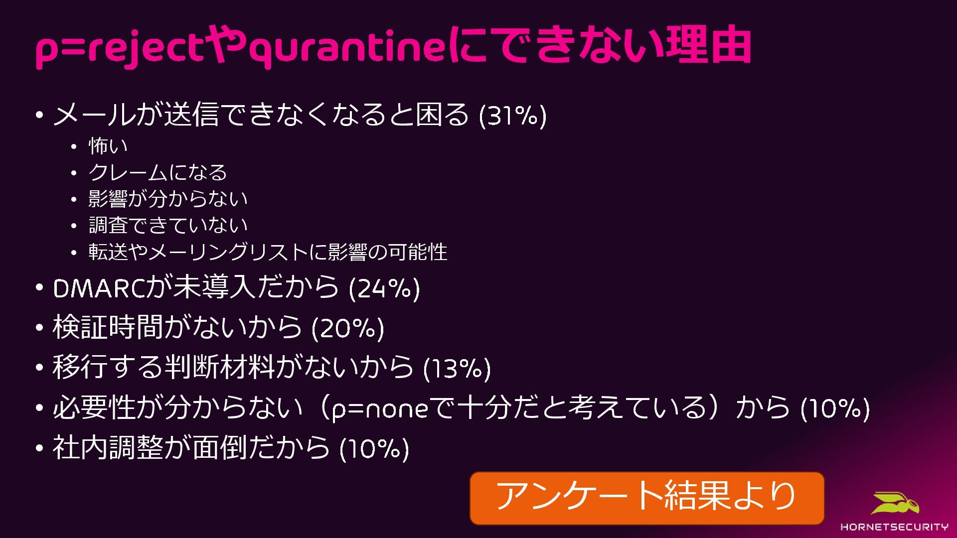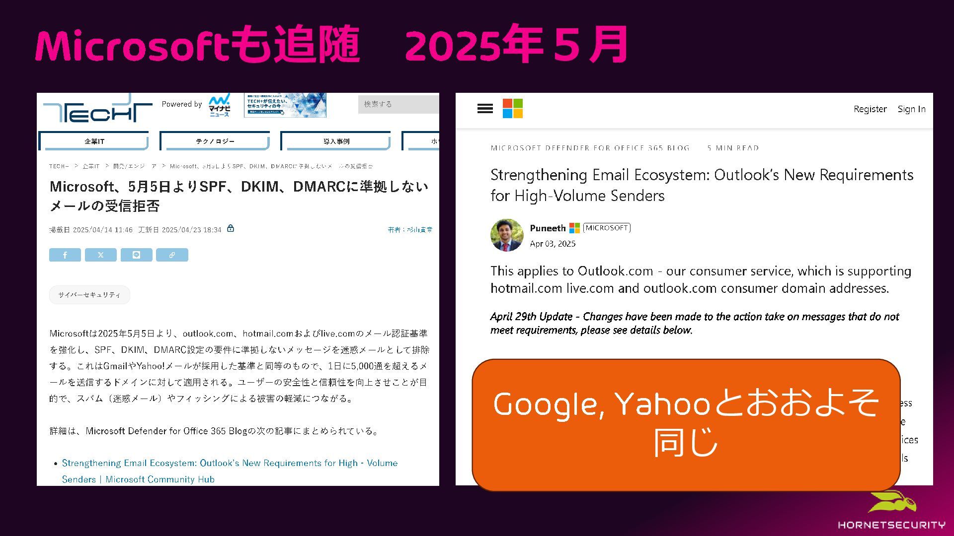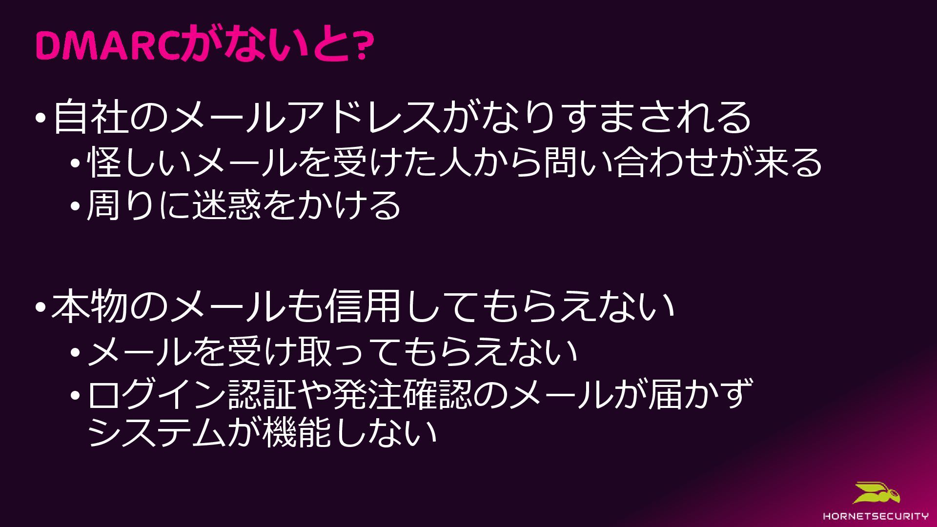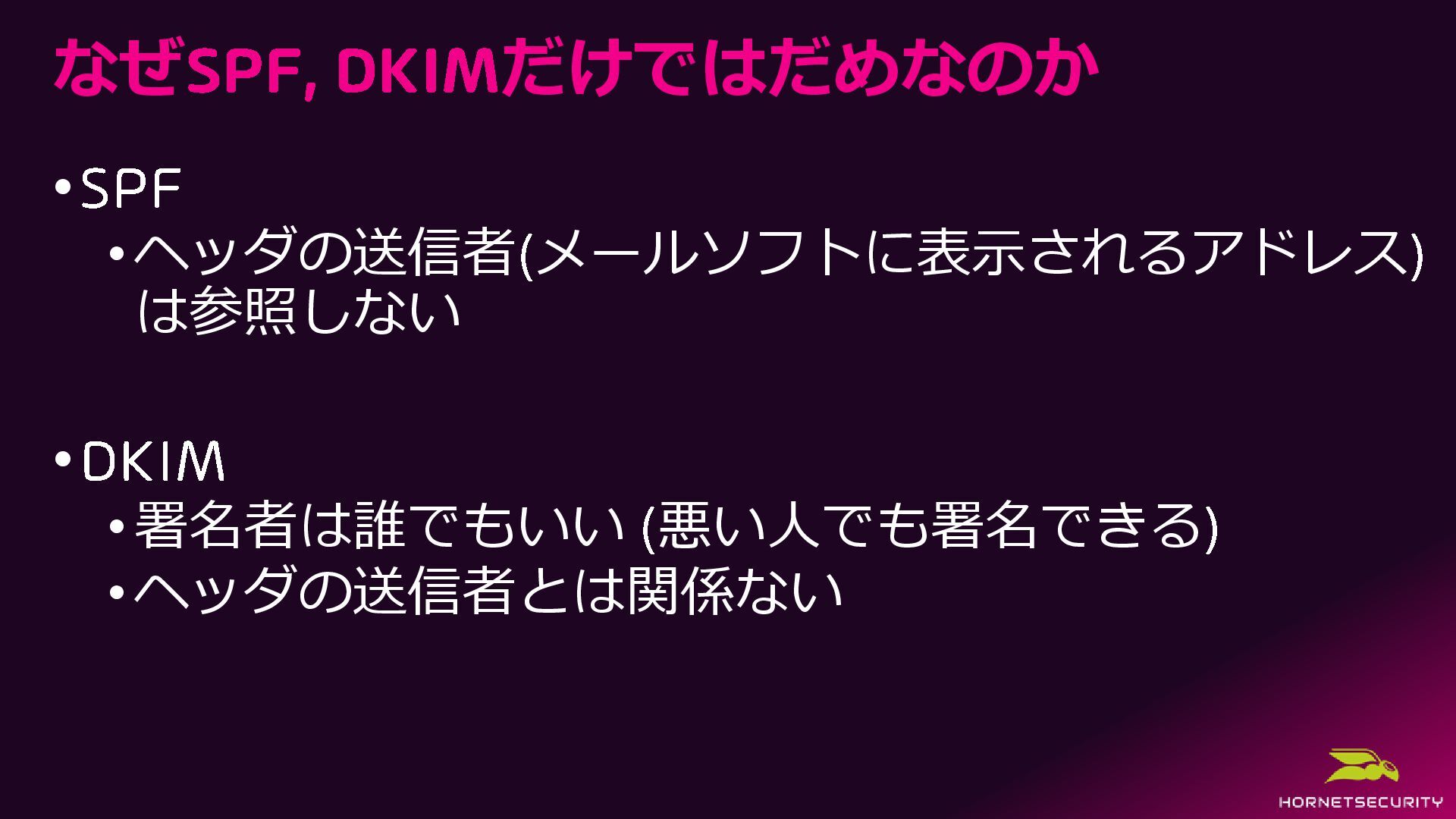 DMARCの導入は多くの企業で進みつつありますが、実際の現場からは「SPFの更新が追いつかない」「DMARCレポートを見ても理解できない」「p=noneから先に進めない」といった声が数多く聞かれます。DMARCは、導入しただけでは十分な効果が得られず、日々の運用こそが真の課題なのです。本セッションでは、こうした“現場のつぶやき”を切り口に、なぜDMARCの運用が難しいのかを整理し、その解決策を探ります。さらに最新のトレンドとも言える「BIMI」にも触れ、今後のメールセキュリティを考える上で押さえておきたいポイントや、運用の壁をどう乗り越えるか、そのヒントを紹介します。