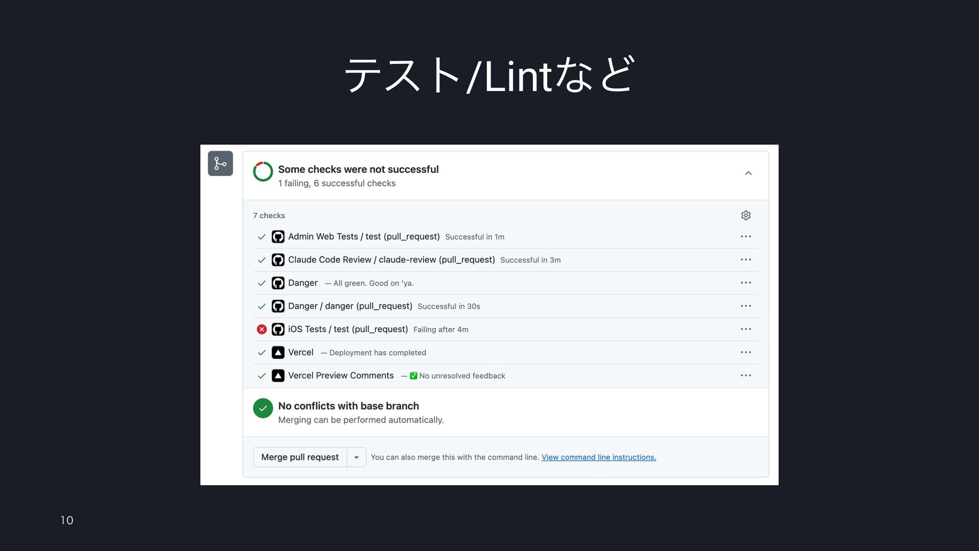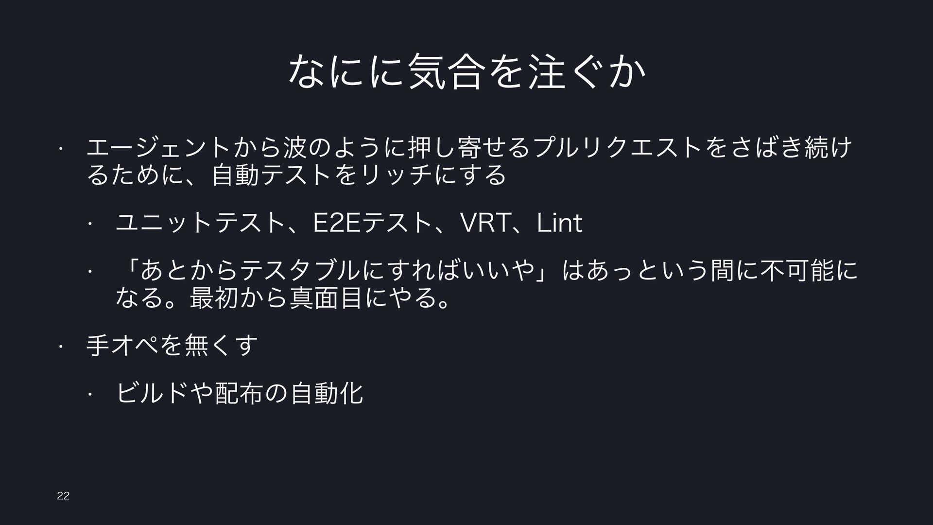ͳʹʹؾ߹Λ͙͔ w ΤʔδΣϯτ͔ΒͷΑ͏ʹԡ͠دͤΔϓϧϦΫΤετΛ͖͞ଓ͚ ΔͨΊʹɺࣗಈςετΛϦονʹ͢Δ w Ϣχοτςετɺ&&ςετɺ735ɺ-JOU w ʮ͋ͱ͔Βςελϒϧʹ͢Ε͍͍ʯ͋ͬͱ͍͏ؒʹෆՄೳʹ ͳΔɻ࠷ॳ͔Βਅ໘ʹΔɻ w