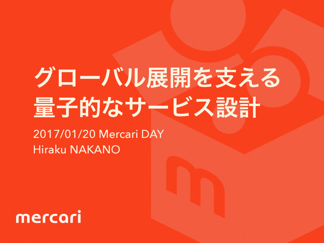 άϩʔόϧల։Λࢧ͑Δ ྔࢠతͳαʔϏεઃܭ 2017/01/20 Mercari DAY Hiraku NAKANO