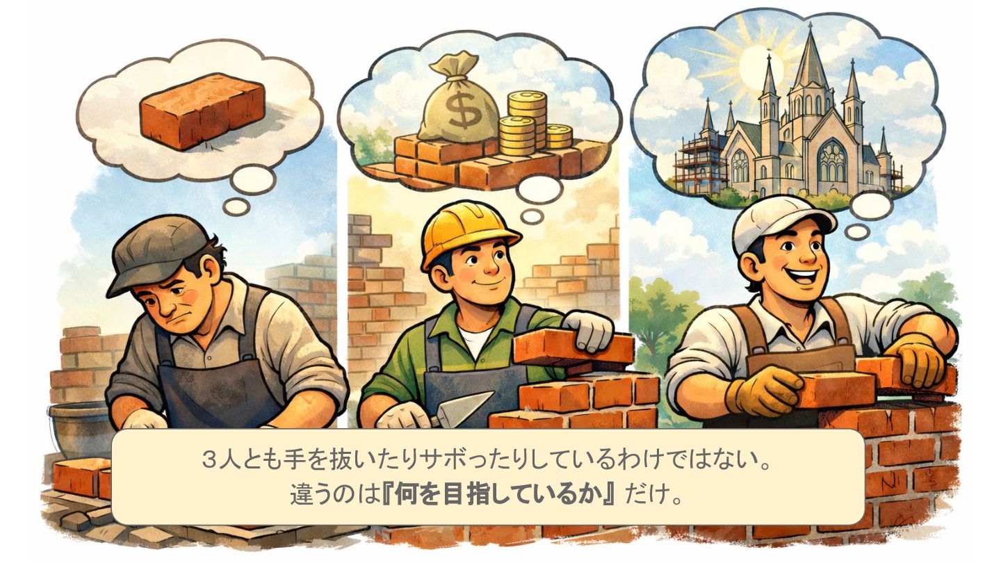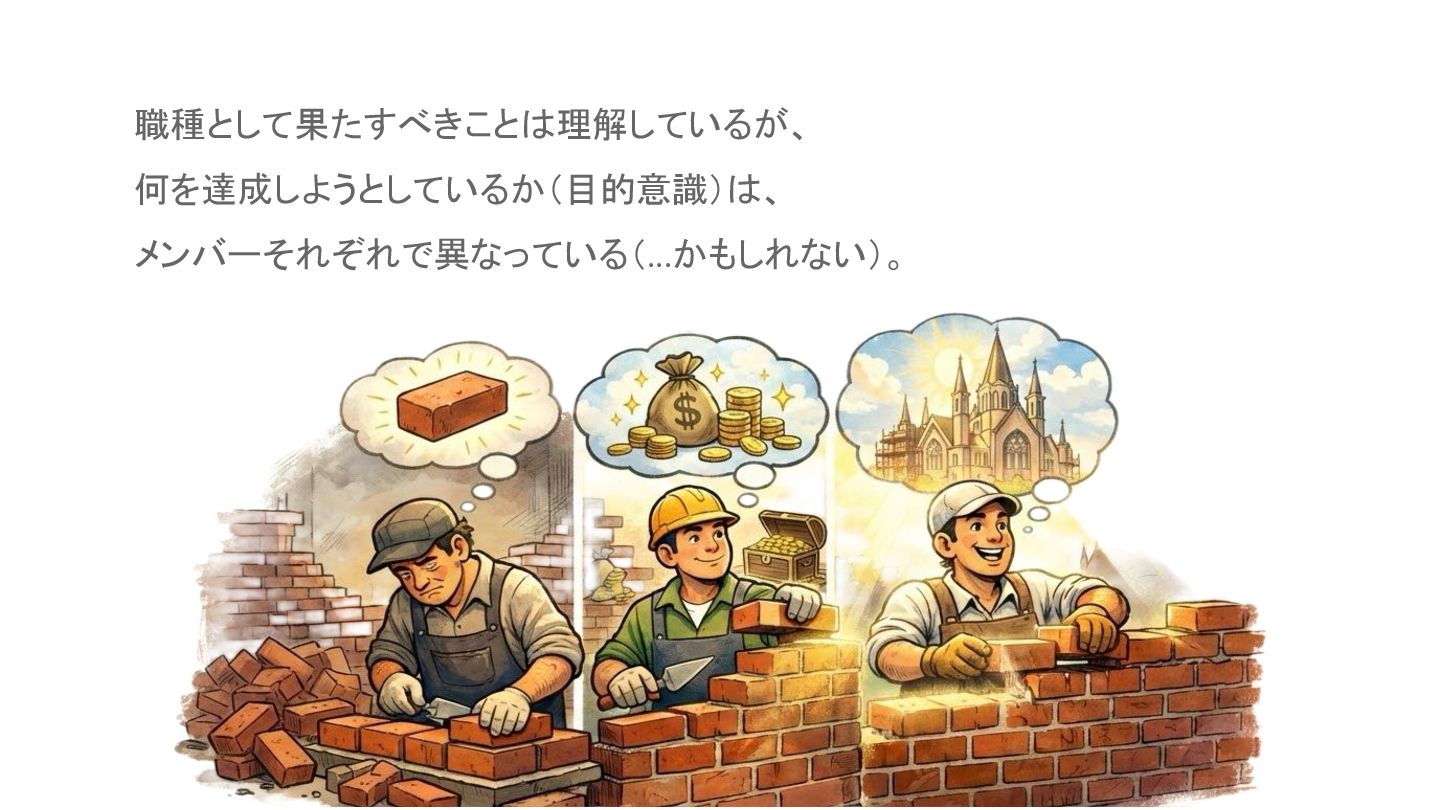 職種として果たすべきこと 理解しているが、 何を達成しようとしているか(目的意識) 、 メンバーそれぞれで異なっている(...かもしれない)。