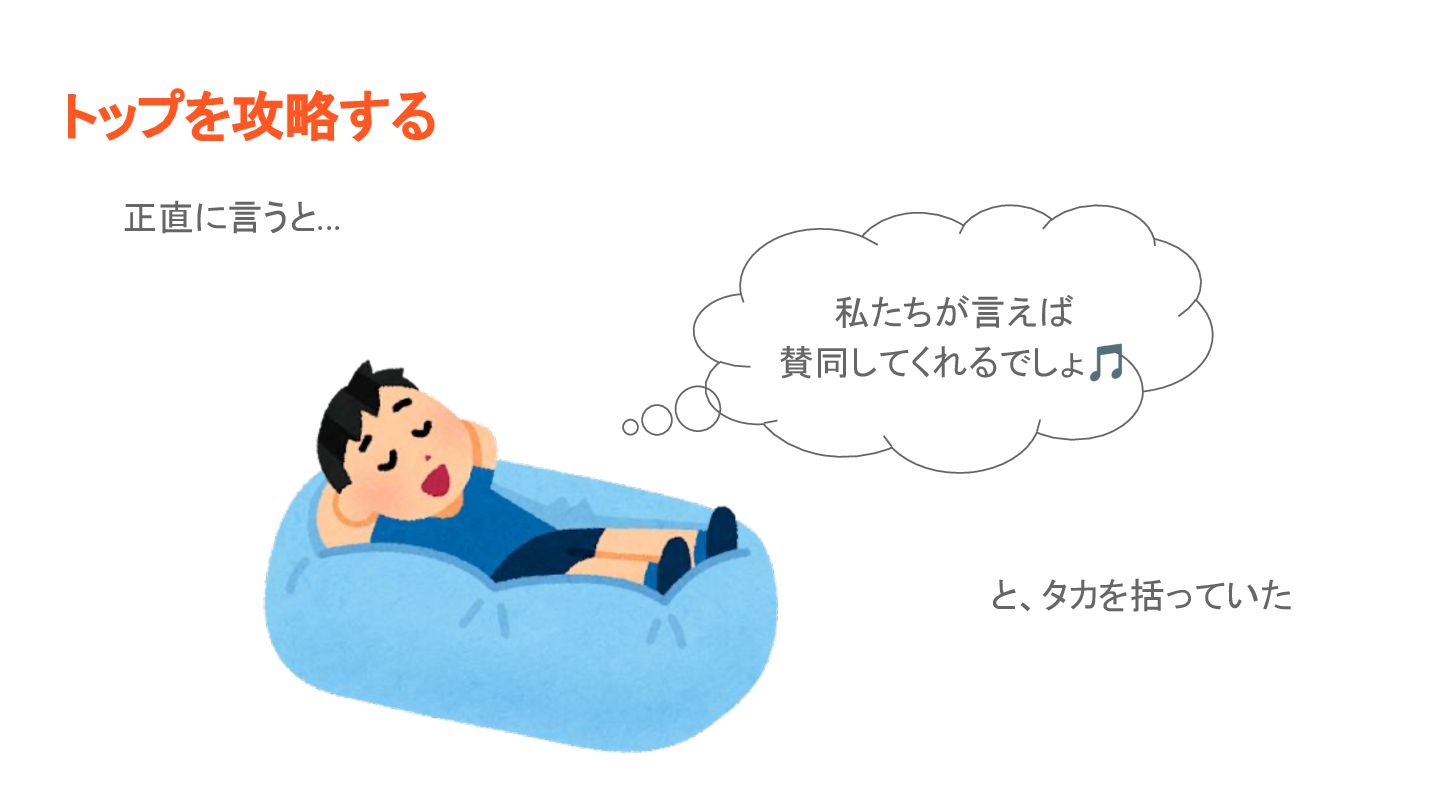 トップを攻略する 正直に言うと... 私たちが言え 賛同してくれるでしょ🎵 と、タカを括っていた