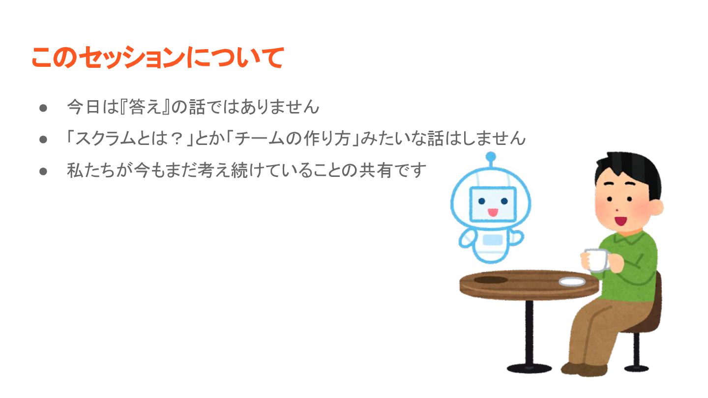 こ セッションについて • 今日 『答え』 話で ありません • 「スクラムと ?」とか「チーム