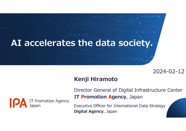Kenji Hiramoto Director General of Digital Infrastructure Center IT Promotion Agency, Japan Executive Officer for International Data Strategy Digital Agency, Japan