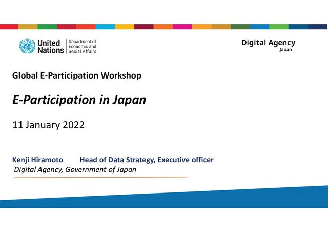 Transparency and Openness 2. Fairness and Ethics 3. Security and Safety 4. Continuity, Stability, Resilience 5. Resolution of Social Challenges 6. Adaptability and Agility 7. Inclusion and Diversity 8. Digital Ubiquity 9. Creation of New Value 10. Ongoing Breakthroughs National E-Participation Policy and Strategy 2 E-information • Open data • SNS • Blog E-consultation & E-decision-making • Open dialogue • Collaboration • Meetup
