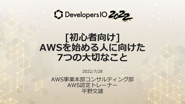 DevelopersIO 2022で発表した資料です。 https://classmethod.jp/m/developers-io/ ブログはこちらから https://dev.classmethod.jp/articles/devio2022-7tips-for-begginers/