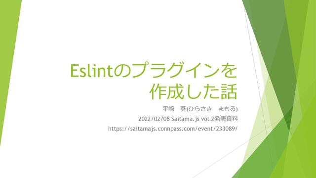 Eslintのプラグインを 作成した話 平崎 葵(ひらさき まもる) 2022/02/08 Saitama.js vol.2発表資料 https://saitamajs.connpass.com/event/233089/