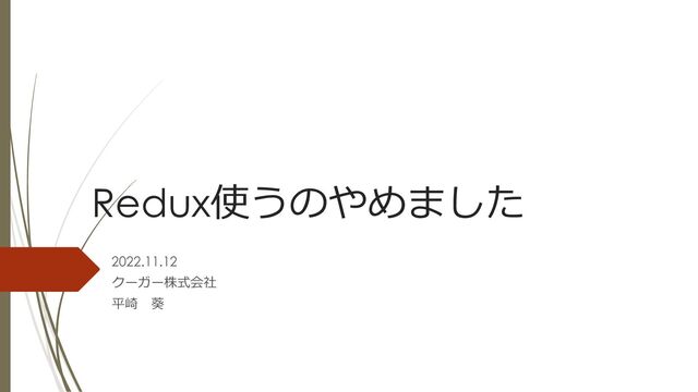 Redux使うのやめました 2022.11.12 クーガー株式会社 平崎 葵