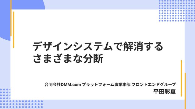 デザインシステムで解消する さまざまな分断 合同会社DMM.com プラットフォーム事業本部 フロントエンドグループ 平田彩夏