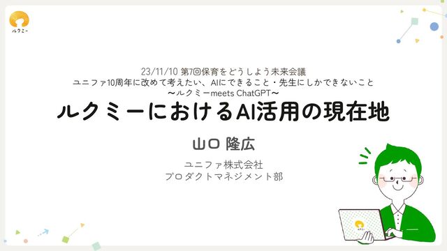 第7回保育をどうしよう未来会議 ルクミー10周年に改めて考えたい、AIにできること・先生にしかできないこと ~ルクミーmeets ChatGPT~ https://lookmee.jp/miraikaigi/
