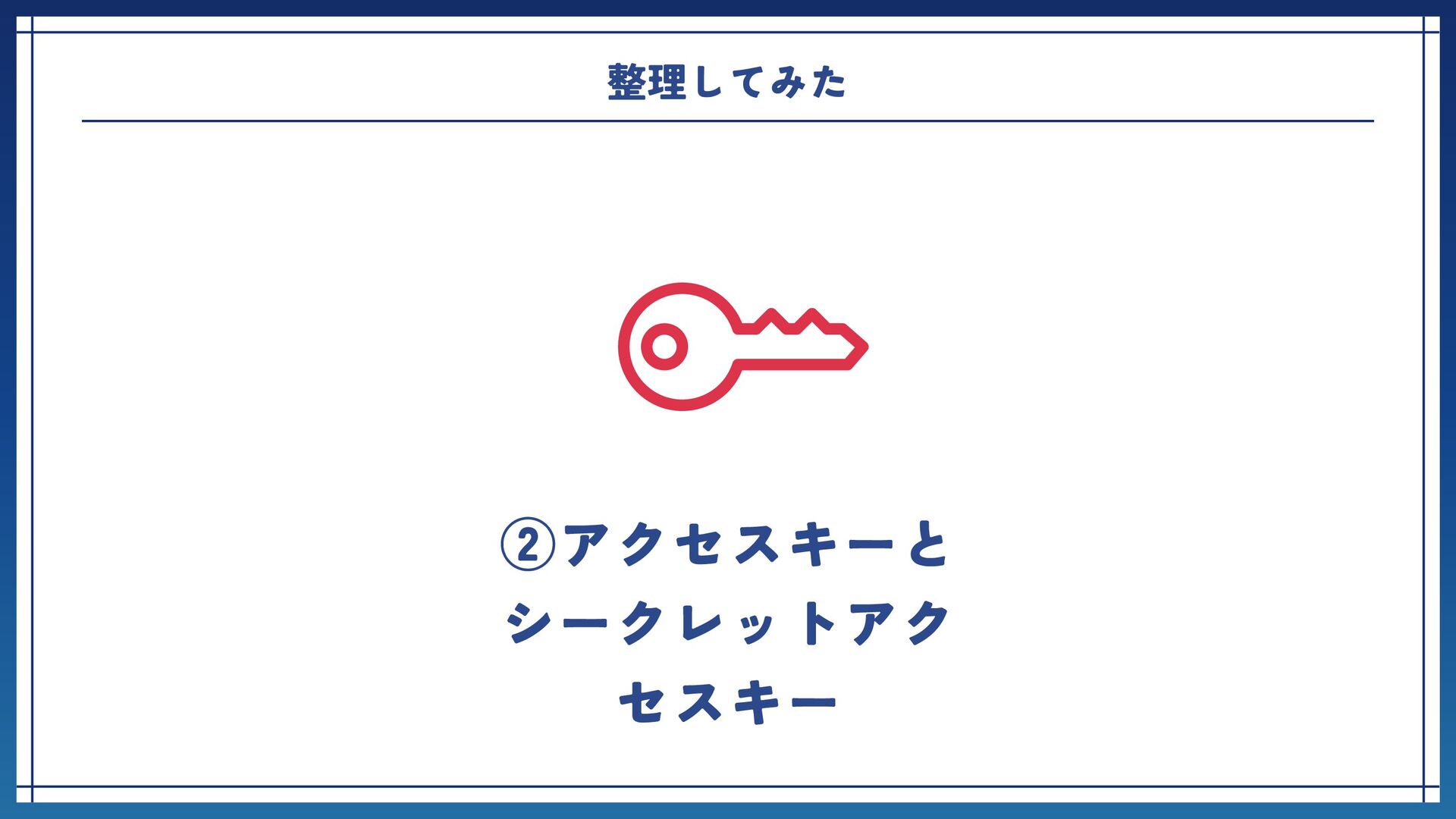 (アクセスキーはアクセスキーIDとシークレットアクセスキーの2つで構成されている!)