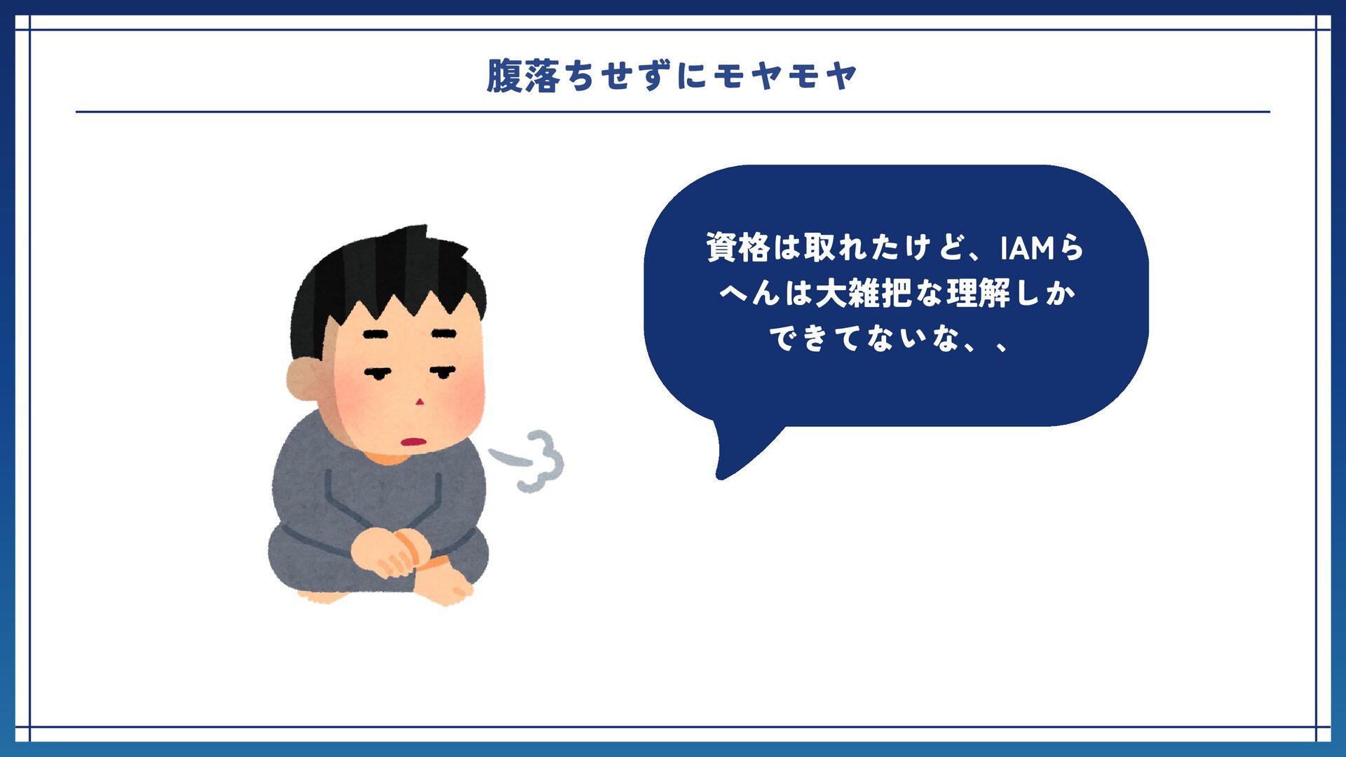 資格は取れたけど、IAMら へんは大雑把な理解しか できてないな、、 腹落ちせずにモヤモヤ
